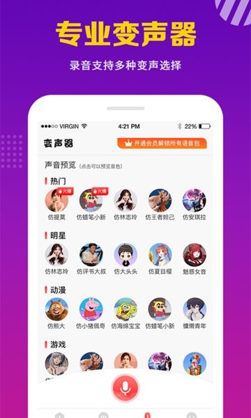 支持在线变声聊天,恶搞整人无穷乐趣。还可以轻松交友,还能保持神秘感。