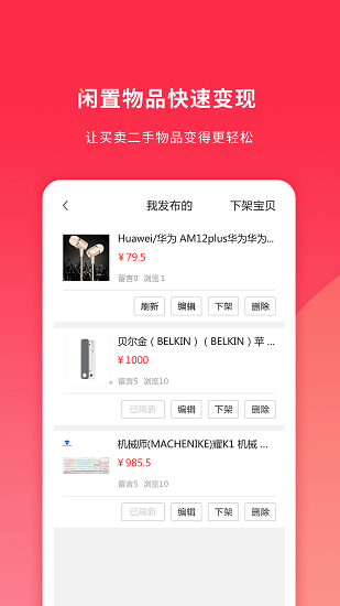 发布闲置物品,能够增大产品交易的几率,轻松互动;