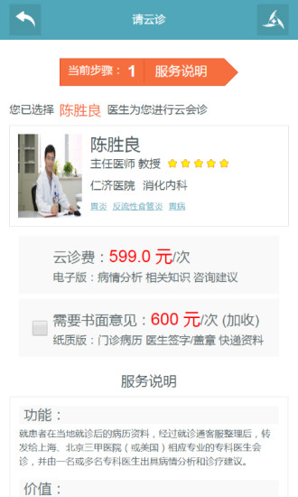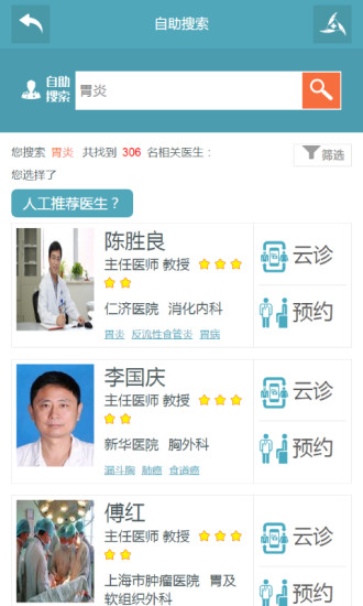 4.推荐医生: 用户可以选择由就诊通专业的医疗团队来为患者推荐最适合的医生。