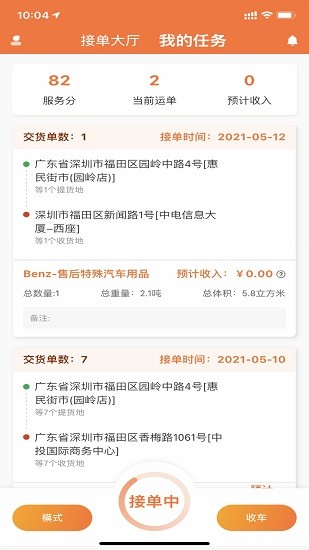 3、每日的接单情况都有统计,直观查看运单详情,还能查询记录的运单服务状态。