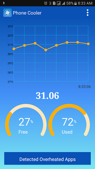 使用特殊算法自动检测过热应用程序,监控和扫描消耗资源并导致热运行的应用程序,并帮助解决崩溃和CPU崩溃问题,通过手机冷却器降低手机温度成为最佳应用程序。