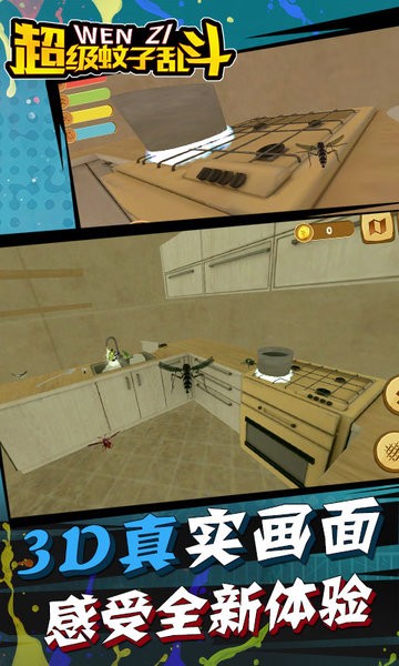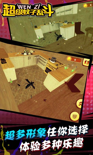 超级蚊子乱斗是超逼真的模拟游戏。游戏中你将变身为一只蚊子,体验蚊子家族的日常生活状态,包括飞行,捕食等等。通过完成剧情任务强化你的小蚊子。