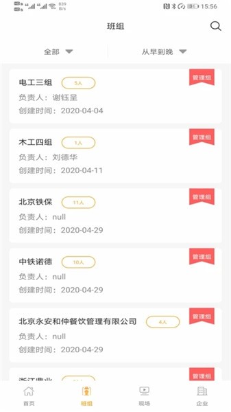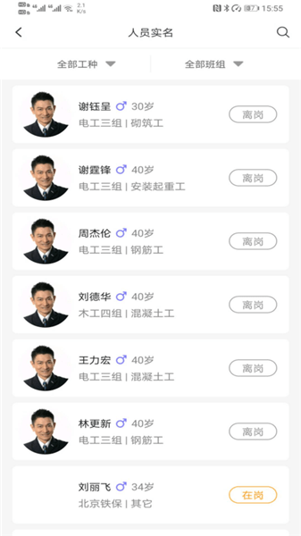 线上即可实时查看到所有工种,实时浏览员工班组;