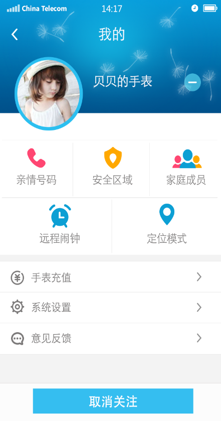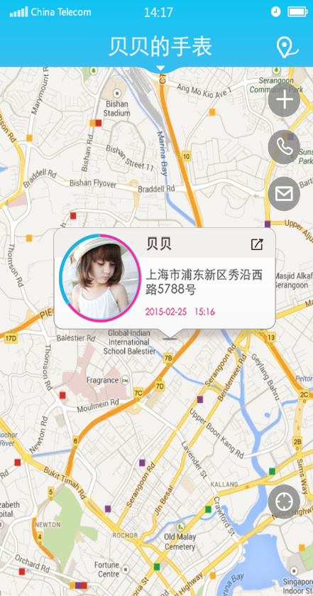 亲在哪学童版,是一款针对学龄儿童开发的亲情关怀的移动互联网应用产品。通过儿童佩戴的智能手表终端,以及家长手机上的APP服务软件,实现亲子实时互动关怀。准确获取查看儿童的地理位置、行动轨迹,在紧急情况下可以第一时间电话沟通,传递关爱,呵护儿童安全。
