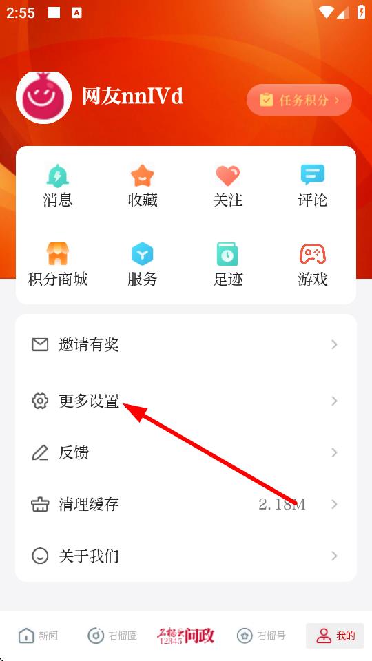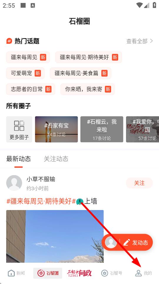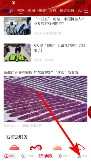 1、在石榴云新闻首页,点击右下角我的选项,进入个人中心页。