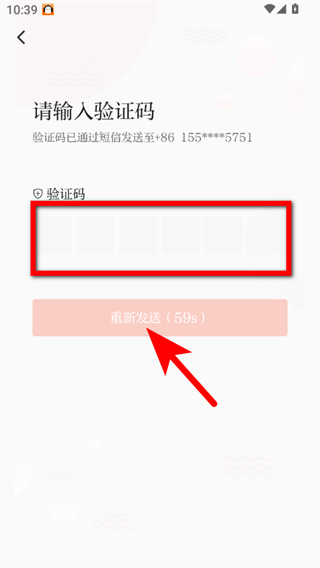 4、在验证码输入页面,输入收到的验证码,即可完成注册登录操作。