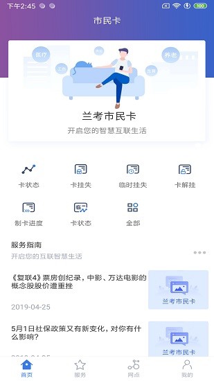 1、专为兰考市市民提供全面的市民卡服务,市民卡便捷轻松管理。