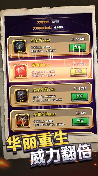 1、各种属性的成长也是五花八门,我们可以通过更多搭配强化英雄来打出各种不同效果;