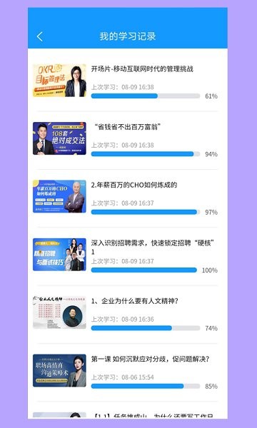 6、公司会给每个人安排不同的学习内容,在这里有各种不同学习的板块,每次学习前都还可以打卡。