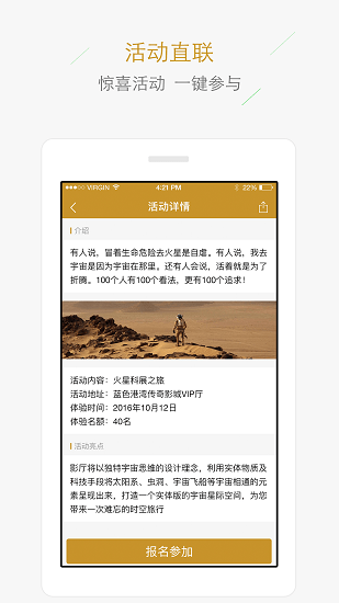 1、影院不定期举行的活动都有同步推送,都能在线查看,并参加优惠活动;