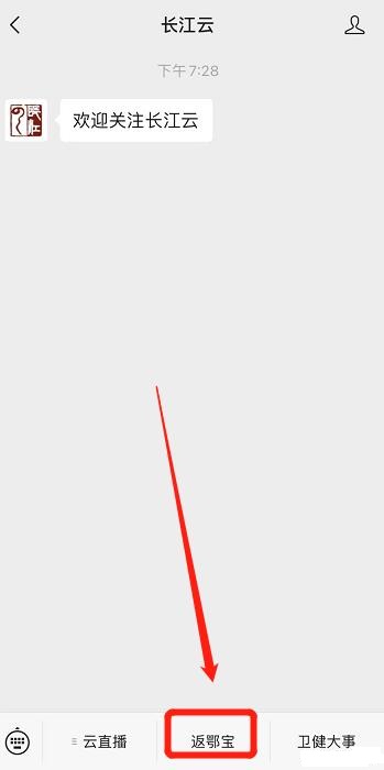 2、关注“长江云”官方微信,点击菜单栏“返鄂宝”即可进入服务平台