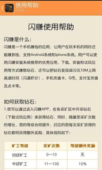 通过进入闪赚APP,在各个采矿区中开采钻石,下载试玩应用,来获取钻石。