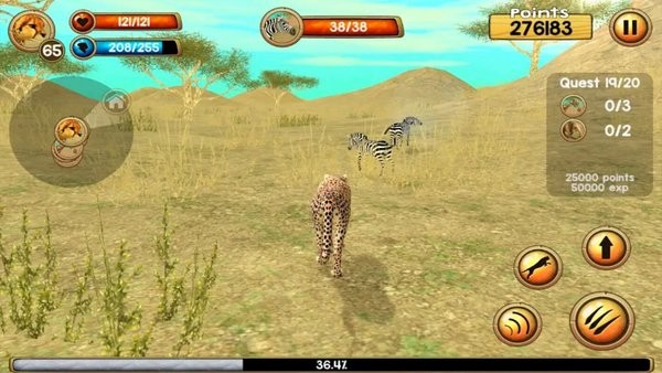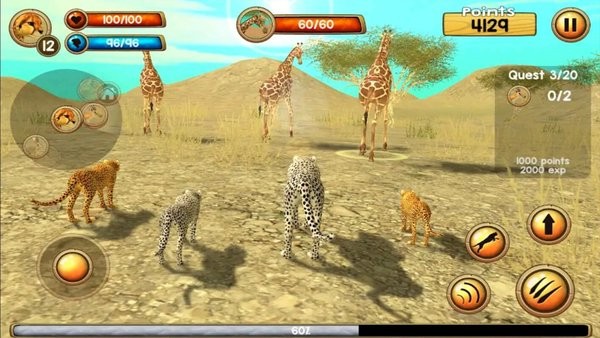 玩家在游戏中将会成为一只猎豹,在丛林中进行捕食战斗。游戏采用3d画面,让人有真实的体验感。尝试着与野生萨凡纳的猎豹家族一起共同生存,用你手中的猎枪去消灭这些异常凶猛可怕的敌人,不要胆怯,你将在非洲的野生动物世界感受到不一样的乐趣生存体验,热血与刺激并存的英勇战斗,还有更多野生动物正在此处等待着你!