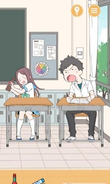 恶作剧女孩是一款卡通休闲搞笑整蛊类游戏,扮演一个喜欢恶作剧的女生,使用各种道具和方式来整蛊邻桌的男同学,可以观察对方的不同反应,每一关都有不同的体验在等你哦~本次带来恶作剧女孩安卓版游戏下载,游戏为关卡模式进行,喜欢卡通休闲益智闯关类游戏的朋友们不要错过哦!