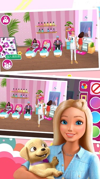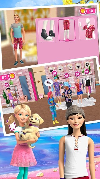 创建属于你自己的芭比魔幻花园!创建属于你自己的芭比魔幻花园体验!你可以设计每个房间。来认识我的死党、狗狗和爱丽莎!快来参加梦幻屋里的各式有趣活动:烘焙、跳舞或经典的泳池派对!乘坐我的粉红色敞篷车,出发探索马里布,寻找更多趣味活动。另外,请帮我和我的朋友们打扮得时髦出彩,拍出美美的照片!跟随我们踏上刺激的梦幻屋大冒险,体验一切皆有可能!
