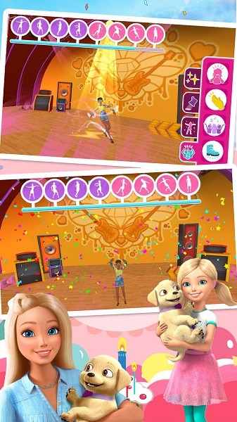 带上你最爱的乐器,跟我们的乐队一同摇滚!有我们的吉他手斯基珀、鼓手肯恩、钢琴手黛西以及主唱芭比,准备好彻夜狂欢吧!狗狗都忍不住随之欢唱!