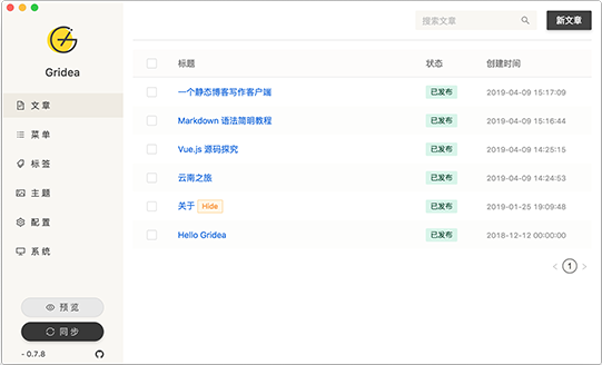 gridea软件可以创建个人博客,在线分享各种文章,可以快速发布到网上,内置多种快捷编写工具,可以帮助用户在线排版,解锁更多管理方式,可以查看用户评论,关注作者更加方便。
