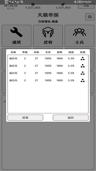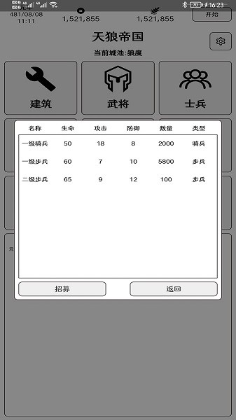 简易的战争策略休闲游戏,游戏中你扮演的角色是一国之主,你将治理你的国家,上到与邻国打交道,下到臣民的日常问题处理。带领你的军队征战四方、开疆扩土,让你的国家变得更加强大。