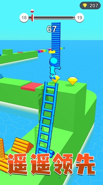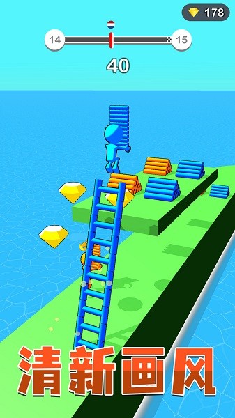 点击并按住以建立梯子,爬上楼梯以克服障碍,并在梯子比赛中到达终点。
