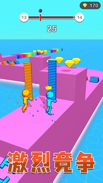 搭建楼梯并克服障碍,赢得梯子比赛,彩色图形,上瘾的跑楼梯游戏,易于玩的控件只需构建并运