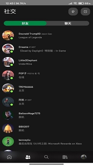 微软xbox beta红包版社交部分主要是好友管理、聊天、通知、查看好友最近所玩的游戏等功能,通知和截图分享都会在主机和手机之间跨设备同步提示。