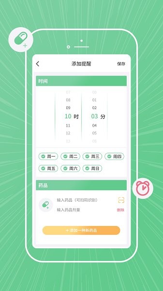 2、贴心提醒:4种快捷设置方式可供选择,适用于不同类型的服药方式;