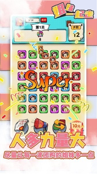 姐妹一起走安卓版极具趣味性的角色消除小游戏,其玩法和其它消除手游类型,通过移动方块来快速完成消除,游戏关卡丰富,你可以在这里尽情感受消除所带来的欢乐,方块背景颜色很相似,小心不要看混了!