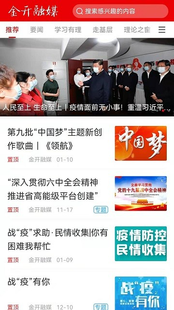 金开融媒app为当地用户带来一款可以非常全面了解各类资讯的线上融媒平台,丰富的资讯内容包含新闻、政务、服务等多个方面。能够极大的满足用户的需求,创建更加优质的生活状态,欢迎大家前来了解更多精彩内容!
