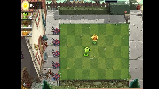 3、界面左方显示为植物塔防,僵尸从右方向你的房子进攻;
