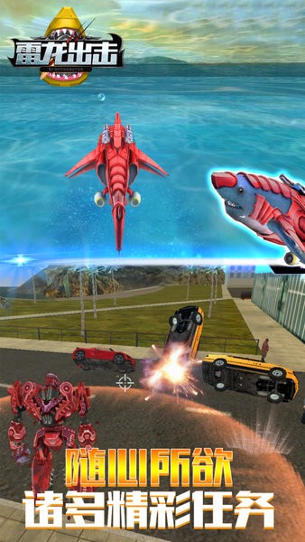 雷龙出击3d机器鲨游戏是以经典的变形金刚游戏为主要玩法的趣味变身手游,刺激的战斗还在继续,我们的小伙伴仍然坚守自己的本心,开启自由的冒险和战斗吧!为了成为新时代的开拓者,一起自由的驾驶机甲向前吧!