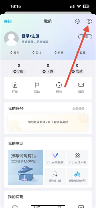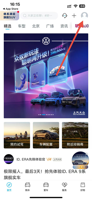 1、进入上汽大众app,点击右上角的个人头像图标,进入我的页面。