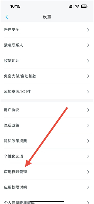3、在设置界面中,找到应用权限管理选项并点击,进入应用权限管理页面。