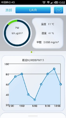 预设了PM2.5的8小时、24小时、一周的监测曲线