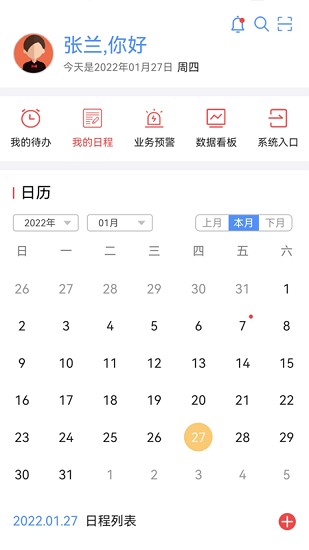 2、日程管理是员工根据自身需要在日历上添加个人事务以达到定时提醒的目的;