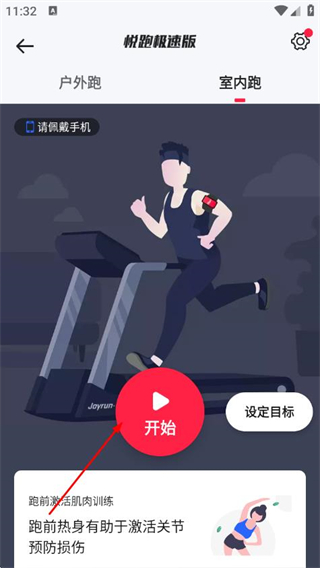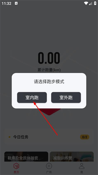 2、在弹出的跑步模式选择框中,选择室内跑。