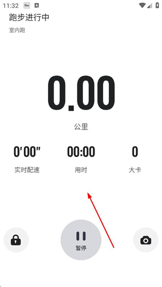 3、进入室内跑页面后,点击红色开始,进入跑步进行中界面。