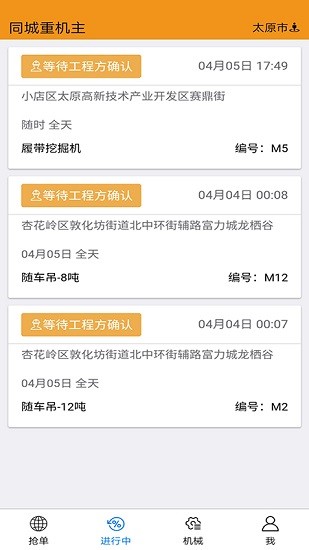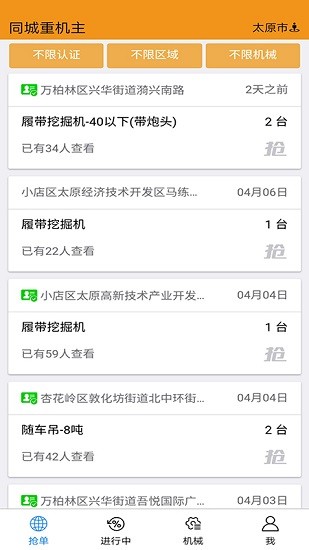 同城重机主专门为各大机械主打造的一站式接单平台,在这里拥有非常多的工程订单,订单的种类多种多样,你可以根据订单的需求来选择接单。线上支持与单主联系,了解具体的情况,每次接取的订单会自动记录,可以方便你进行对账。欢迎有需要的朋友下载使用!