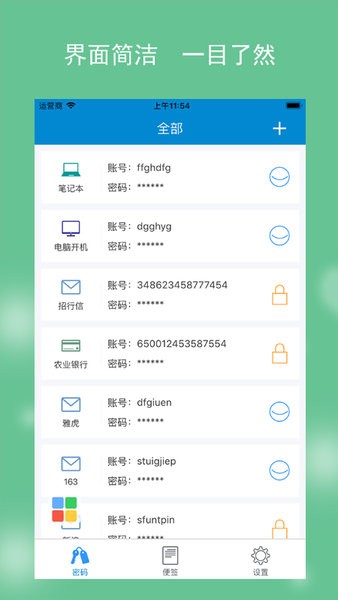 可使用pin码二次加密密码和便签;