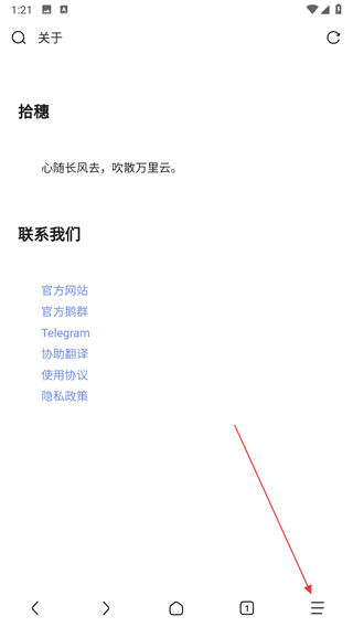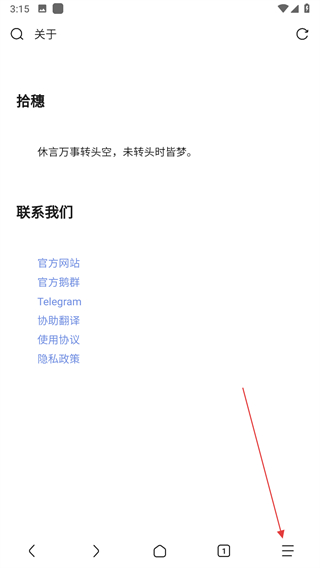 1、打开via浏览器,点击右下角的三条横线菜单按钮。
