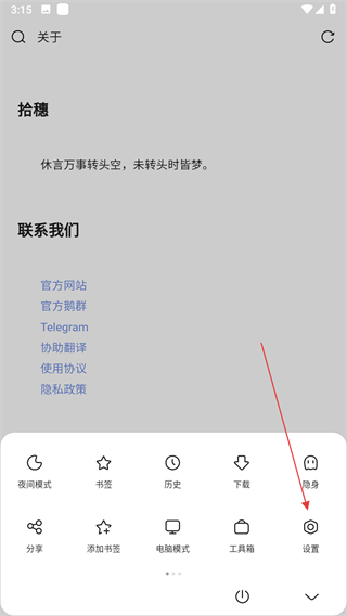 2、在功能菜单中点击设置选项,进入设置页面。