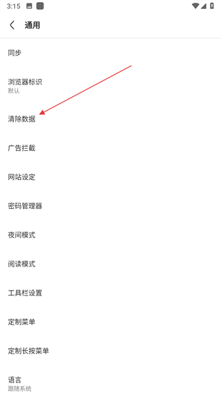 4、在通用页面,点击清除数据选项,弹出清理数据窗口。
