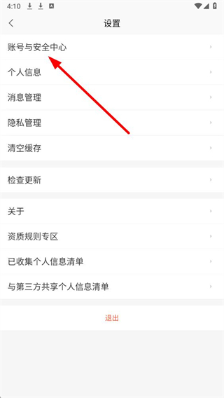 2、在设置页面点击账号与安全中心选项,进入账号与安全中心页面。