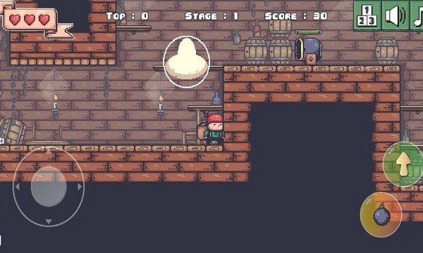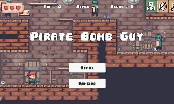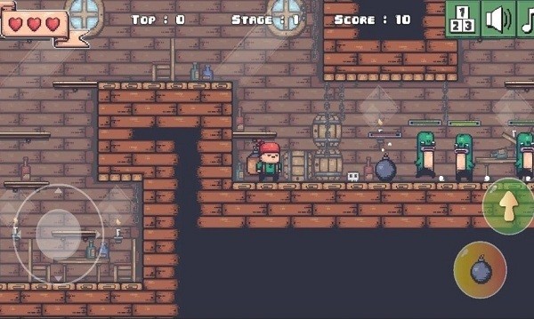 海盗炸弹人是一款简单经典的复古2d动作平台游戏,旋转屏幕方向以防止按下主页按钮。