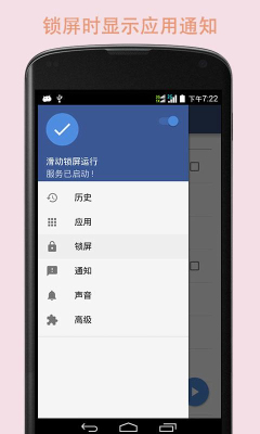 加密手势锁屏解锁采用的手势加密是目前手机上最正规最快捷并安全的手段,必须要输入与你设定的轨迹完全一致才可以解锁。划动的图案相同,而顺序不同,也不能够解锁。