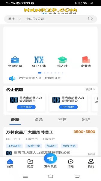 纳鑫人力招聘网app给用户带来便捷的求职服务软件,通过软件用户可以了解到岗位的先关的信息,进一步的进行筛选帮助用户进行工作岗位的适配,同样便捷单位招聘管理,快来下载试试吧!