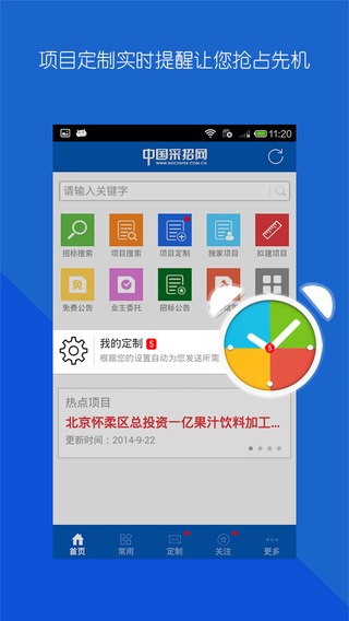 可随时查询到上万个正在招标项目信息;标书下载与招标文件的审核服务成为采招网服务新亮点;智能定制与人工一对一服务更是节省客户的时间成本。客服专员提供8小时工作时间电话热线服务。