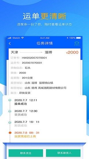 2、司机找到货源以后在线就能与货主取得联系,便捷。