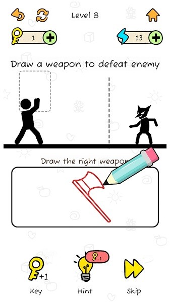 《画出武器Draw 2 Beat》用实线画出所需的武器或物品,以帮助火柴人完成任务。你能通过所有的水平吗?快来测试你的绘画技巧吧!