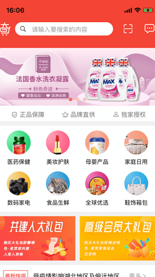 奇货本色软件是超级好用的一款手机购物类型的app,在这里用户们能够找到超多的商品种类进行选购,医药保健、美妆护肤、母婴产品、服装鞋饰、家庭日用、数码家电、食品生鲜、酒水饮料等等等等在这里全都能够找到,让用户们能够感受到一站式购物的方便快捷,还有超多的购物优惠活动帮助用户们省下超多的钱。