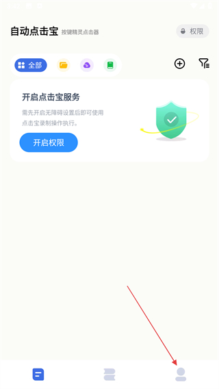 1、打开自动点击宝应用,点击导航栏的个人中心图标。